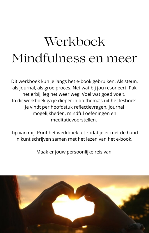 Je hoeft niets perfect te doen. Mindfulness is geen prestatie. Het is een uitnodiging om af en toe even stil te staan. Soms 30 seconden. Soms een paar minuten. Dat is al genoeg om verschil te maken. Tevens kun je het boek, werkboek én de oefeningen en meditaties downloaden en heb je het dus voor de rest van je leven in je bezit :). Je kunt elke dag opnieuw beginnen!